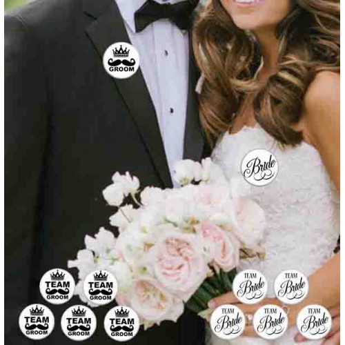 "Bride-Gelin", " Groom-Damat", "Groom Team-Damat Tarafı", "Bride Team- Gelin Tarafı" ,yazılı bu rozetleri düğün, nişan, kına gibi organizasyonlarınızda keyifle kullanabilirsiniz Buton rozetler bir çok alanda kullanılan rozet türlerinden bir tanesidir. Bekarlığa veda, kına gecesi, düğün gibi organizasyonlarda gelin ve damadın kıyafetlerine takılabilir. "Gelin-Damat nişanı" esprisini yansıtır.
