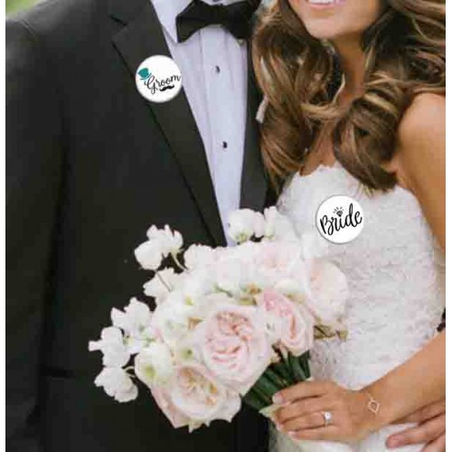 "Bride-Gelin", " Groom-Damat"yazılı bu rozetleri düğün, nişan, kına gibi organizasyonlarınızda keyifle kullanabilirsiniz Buton rozetler bir çok alanda kullanılan rozet türlerinden bir tanesidir. Bekarlığa veda, kına gecesi, düğün gibi organizasyonlarda gelin ve damadın kıyafetlerine takılabilir. "Gelin-Damat nişanı" esprisini yansıtır.