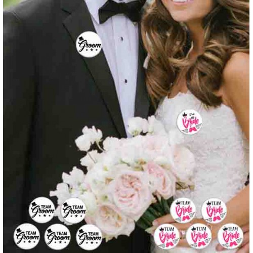 "Bride-Gelin", " Groom-Damat", "Groom Team-Damat Tarafı", "Bride Team- Gelin Tarafı" ,yazılı bu rozetleri düğün, nişan, kına gibi organizasyonlarınızda keyifle kullanabilirsiniz Buton rozetler bir çok alanda kullanılan rozet türlerinden bir tanesidir. Bekarlığa veda, kına gecesi, düğün gibi organizasyonlarda gelin ve damadın kıyafetlerine takılabilir. "Gelin-Damat nişanı" esprisini yansıtır.